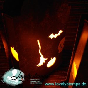 Im dunkeln sehen die Schachteln klasse aus – für den Orangeton an den Ausstanzungen haben ich das schimmernde Pergamentpapier in den InColor Farben 2021 – 2023 genommen. Hier passte Papaya einfach perfekt. So sehen sie auch im ausgeschalteten Zustand richtig gut aus.
