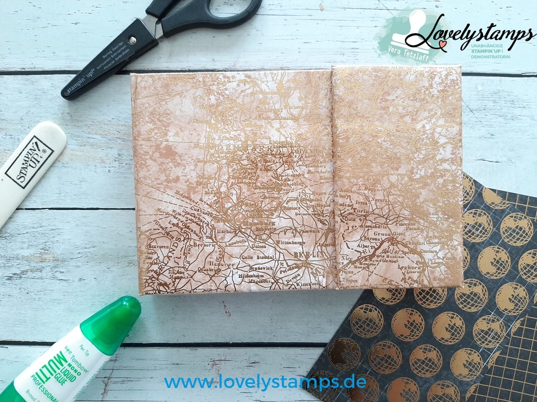 Im Album ist viel Platz für Fotos und das besondere Designerpapier Welt der Abenteuer macht es zu einem richtigen Hingucker. Das Messing strahlt einfach nur toll. Wie findet ihr die Farbkombination?