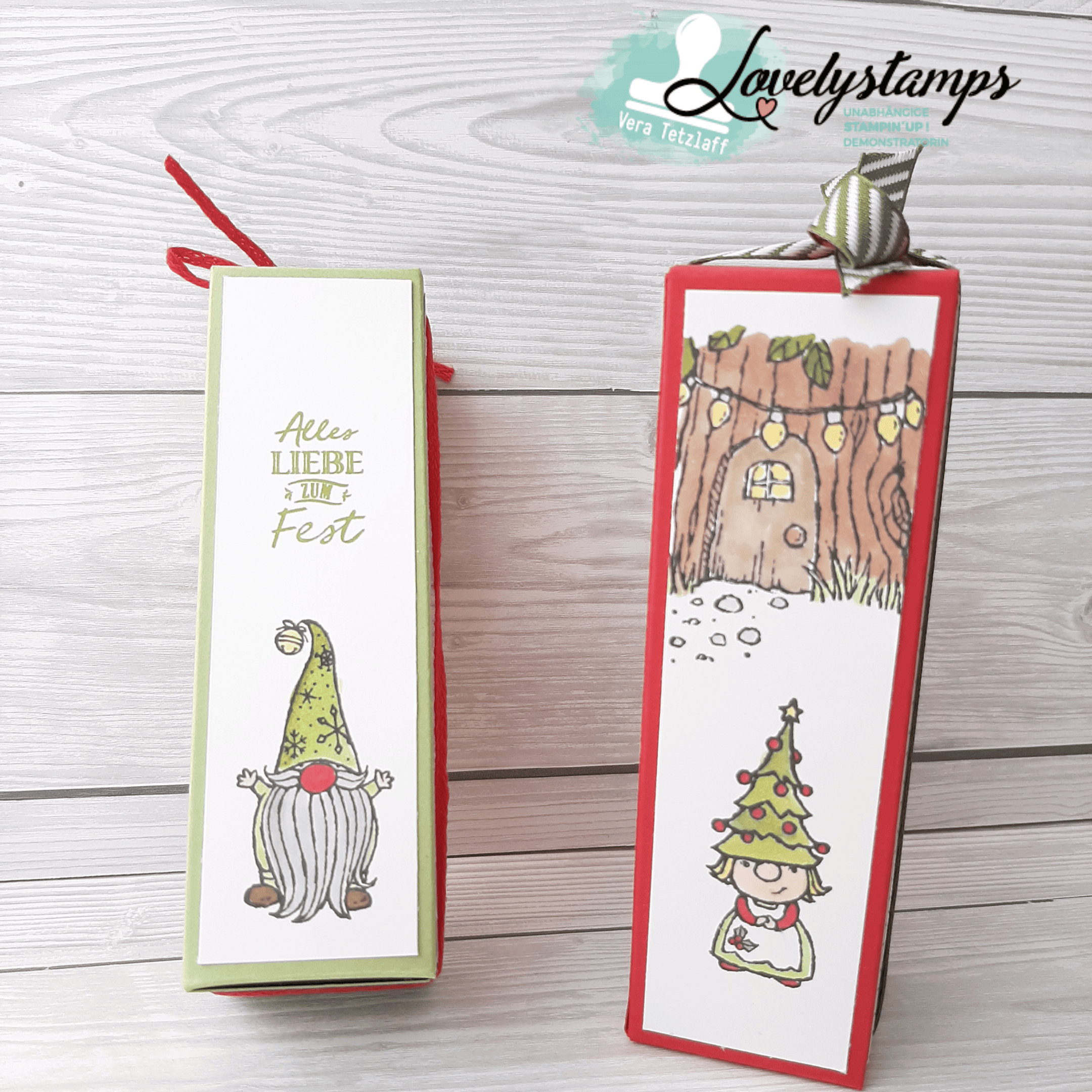 ich habe Boxen mit dem Stampin’ Up! Stempelset “Wichtelweihnacht” gezaubert sowie dem Designerpapier “Weihnachten im Herzen”