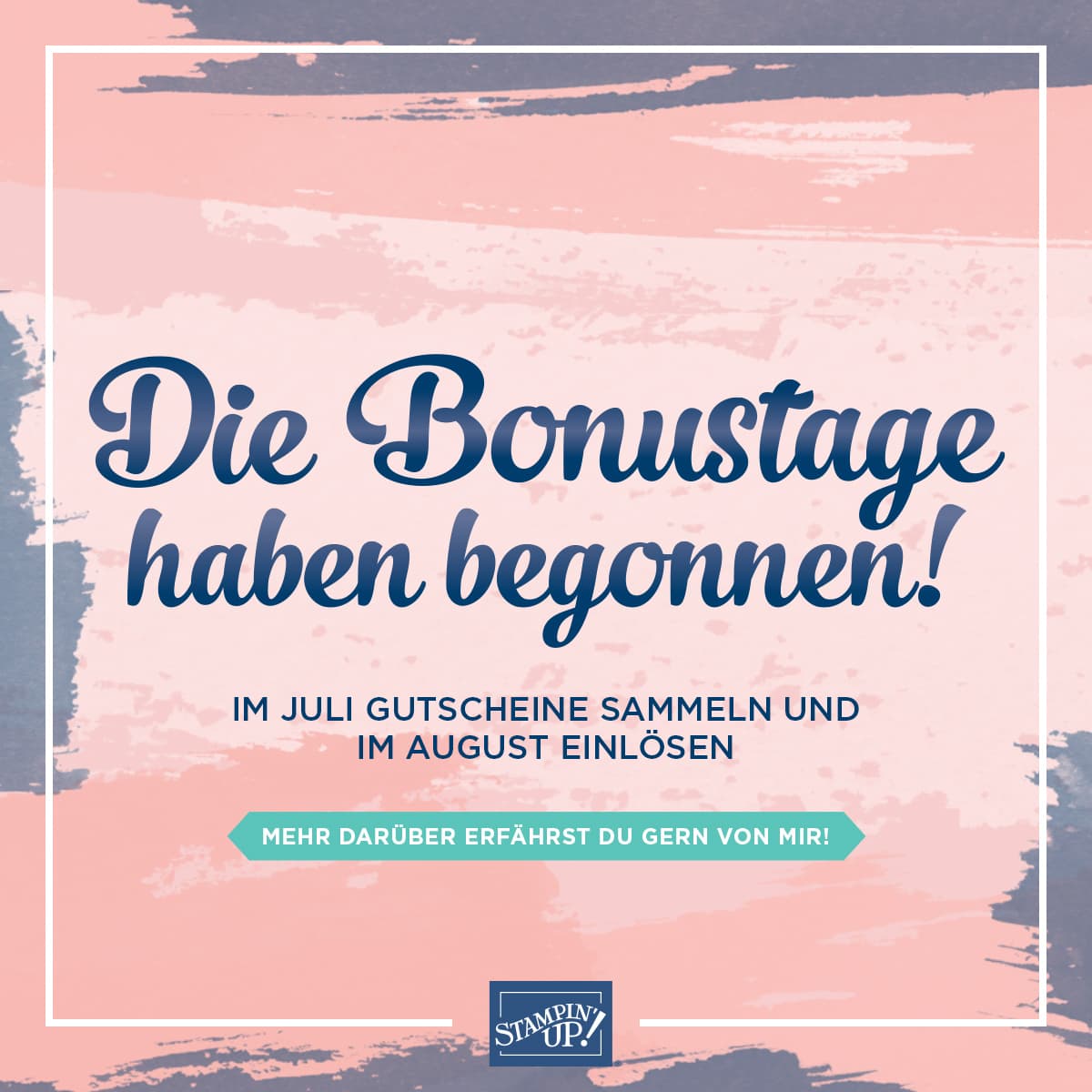 Wenn ihr mit eurer Bestellung jeweils 60 € erreicht, schickt euch Stampin’ Up! per E-Mail jeweils einen Gutschein im Wert von 6,00 € der im August eingelöst werden kann! Das ist doch super oder? Und was auch gut ist, Stampin’ Up! gibt auch die Mehrwertsteuersenkung an seine Kunden weiter – dazu findet ihr alle Infos im folgenden Blogbeitrag.