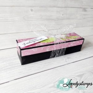 Das Designerpapier „Schöner Tag“ ist einfach richtig schön und damit habe ich den Deckel der Schachtel verziert. Somit war Metallic Folienpapier also genutzt.